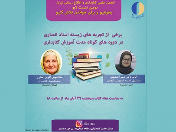 به مناسبت بیست و هشتمین هفته کتاب انجمن کتابداری و اطلاع رسانی ایران نشست مجازی «برنامه های خواندن و کتابخوانی در ایران» را برگزار میکند.